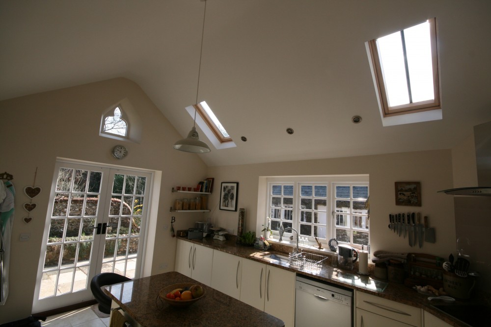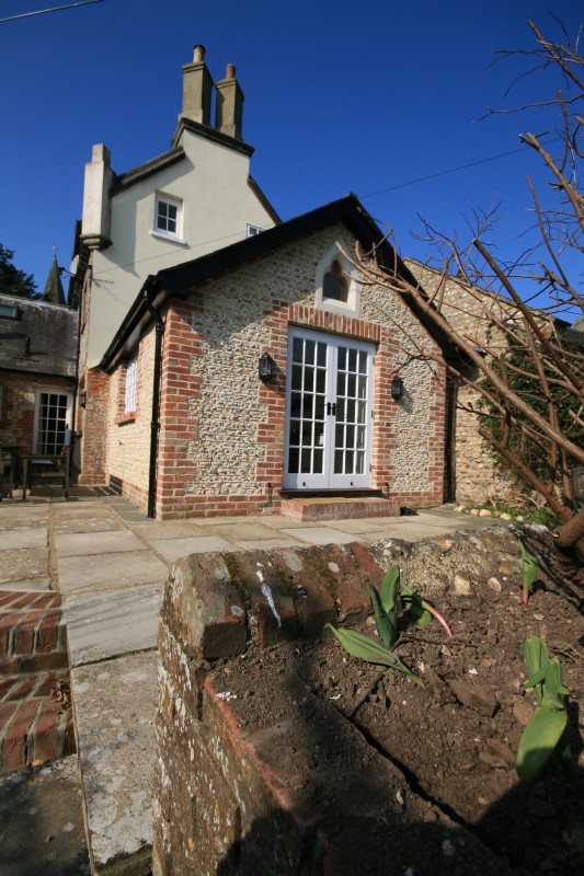 • Scope of work: Kitchen extension using flint, brickwork, and slate roofing