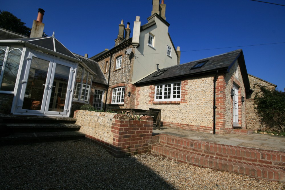 Located opposite the church in Oving, The Old School House is a Grade II listed former school that was previously converted into a private residence. This project involved adding a kitchen extension that respects the building’s heritage through the use of traditional materials, including flint and brickwork, and a slate roof that complements the existing structure. The extension enhances the functionality of the home while preserving its historical charm and architectural integrity.